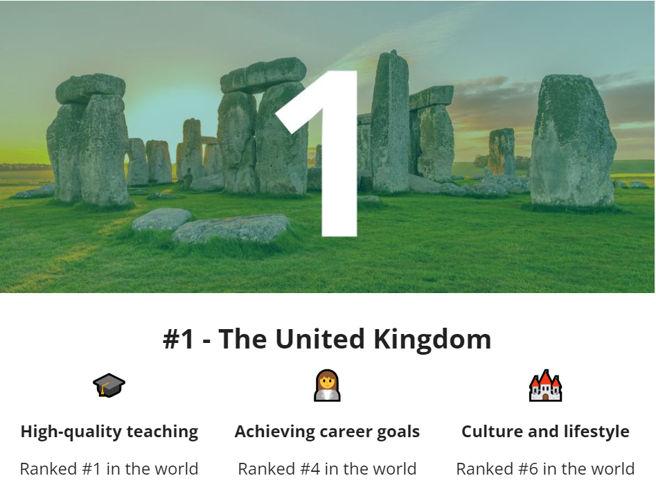 英国拥有牛津剑桥两大王牌学府和G5金砖五校,再加上其又是世界金融中心,这些享誉全球的优质资源不断吸引着来自全球各地的留学生。