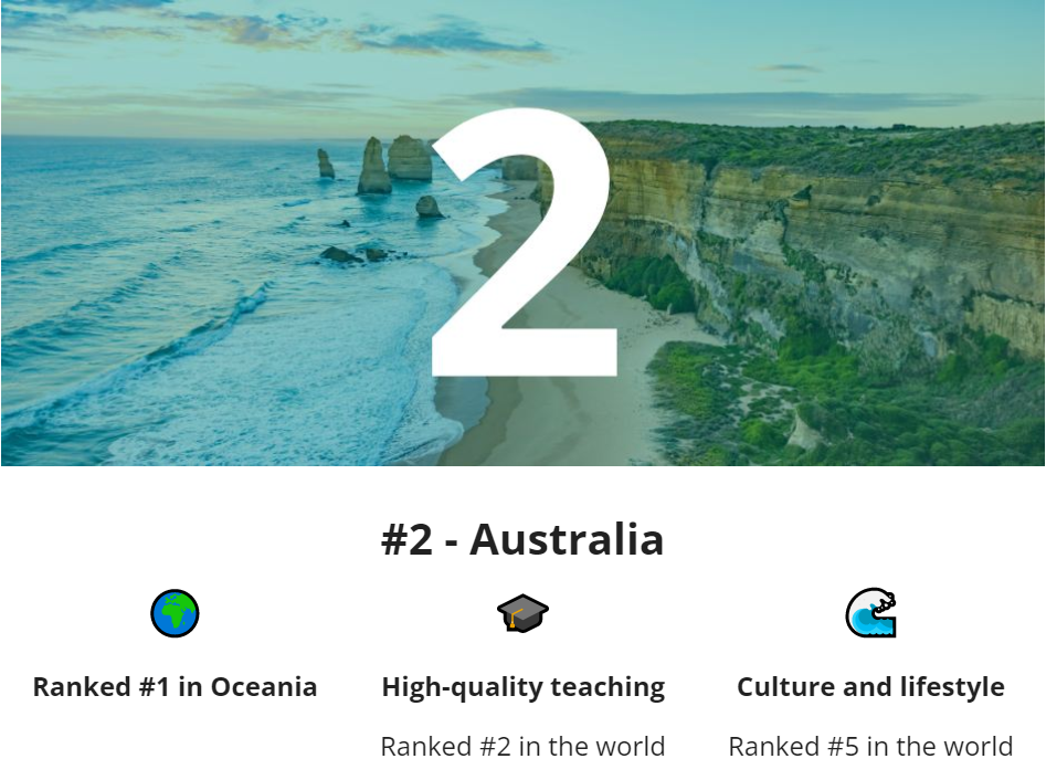 根据官方数据,网站针对数万名留学生进行了调研,最后评选出的结果如下,2023年全球十佳留学国家分别是: