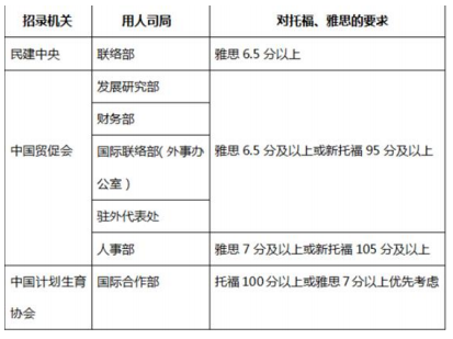 以雅思托福成绩作为英语水平的衡量标准,其中包括中国国家党群机关,中央国家行政