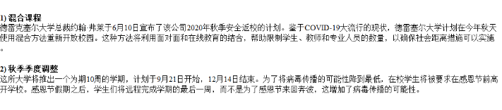 以下是美国大学2020秋季开学政策汇总:德雷赛尔大学(截止6月12日):
