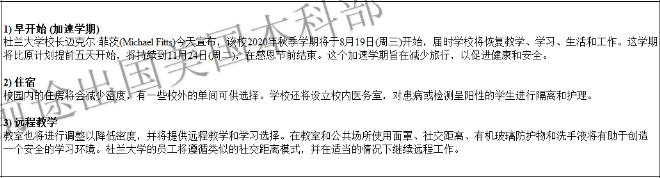 以下是美国大学2020秋季开学政策汇总:杜兰大学(截止6月12日):
