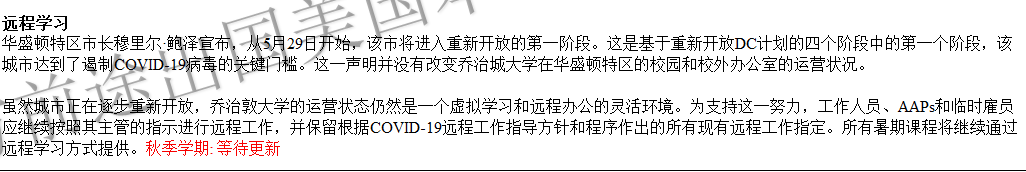 以下是美国大学2020秋季开学政策汇总:乔治城大学(截止6月12日):
