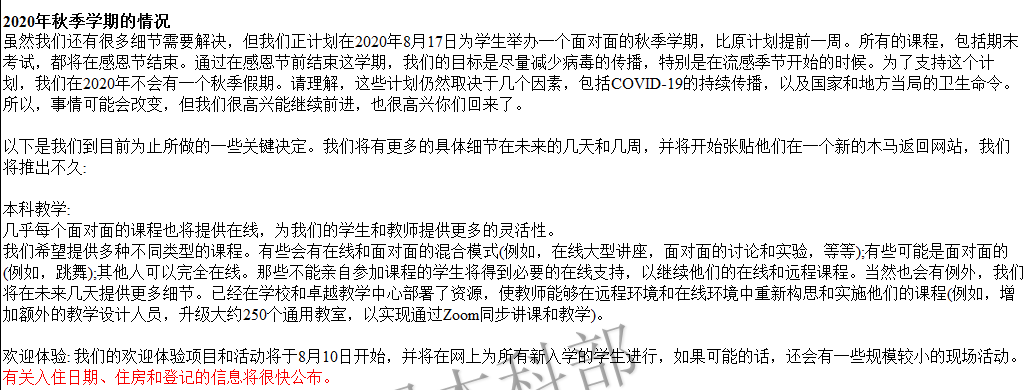 所以,同学们无需焦虑,不管情况如何变化,大学都做好了充足准备和预案迎接秋季学期。