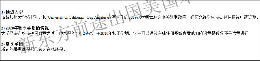 以下是美国大学2020秋季开学政策汇总:加州大学洛杉矶分校(截止6月12日):