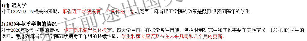 以下是美国美国大学2020秋季开学政策汇总:麻省理工学院(截止6月12日):