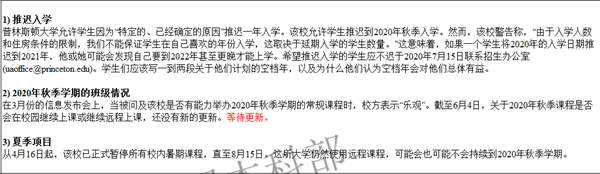以下是美国美国大学2020秋季开学政策汇总:普林斯顿大学(截止6月12日):