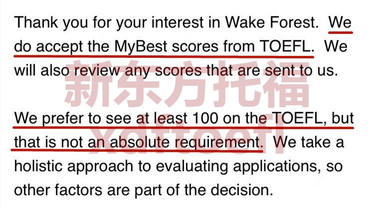 成绩,即我们常说的托福拼分。那么,维克森林大学是否接受托福拼分成绩呢?新东方网在此为大家进行整理。