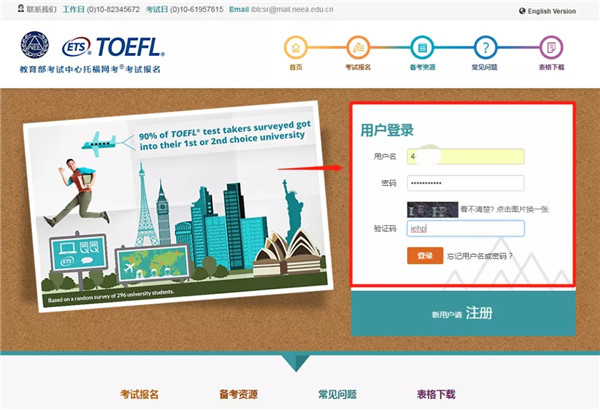 1、登录教育部托福考试报名网站(https://toefl.neea.cn/)