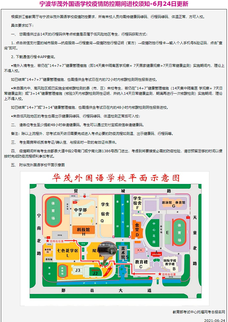 托福考试宁波华茂外国语学校考点疫情防控期间进场要求