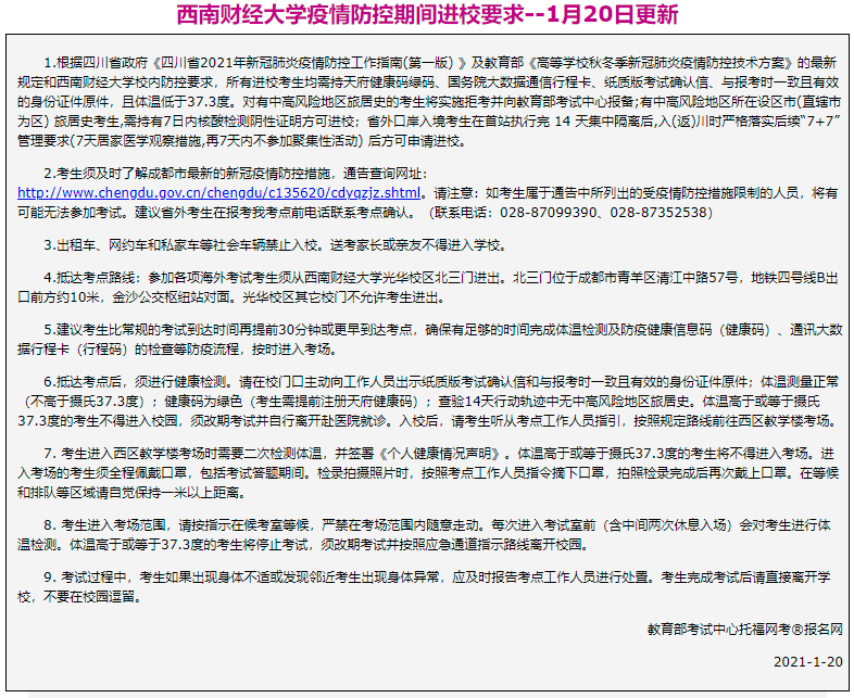 托福考试西南财经大学考点疫情防控期间进场要求