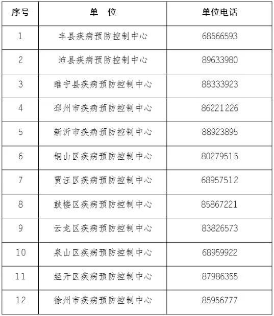 ➤徐州市各县(市)、区疾病预防控制机构联系方式