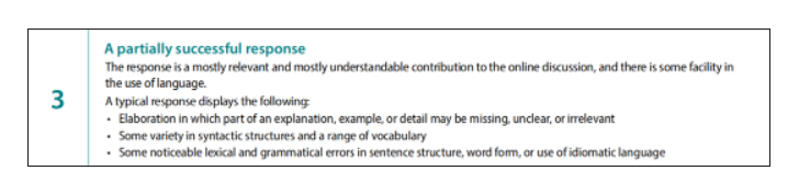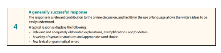3分:该分数段文章大部分切题,对学术讨论进行了较为清晰的补充,而且能展现出一定的语言应用能力。