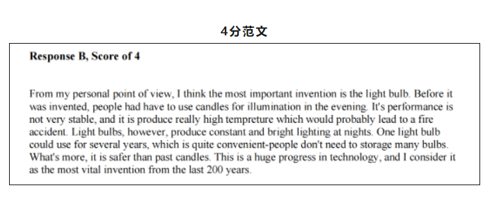 从评分标准以及给出的范文不难看出,想要拿到比较理想的成绩(4-5分),一定要紧扣题目,并给出相应的充分展开,表达清晰准确,尽量减少错误。所以,为了尽可能得到扣题的分数,在写作中,务必充分地体现题目要求和关键词。在平时练习时,需要做到认真阅读材料,审题充分。