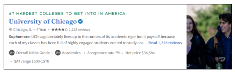 芝加哥大学是世界顶尖私立研究型大学,坐落于美国国际金融中心芝加哥,常年稳居多家世界大学排行榜前十位,其录取率为7%。