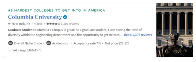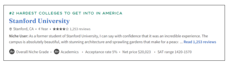 就NIche统计的各大学录取率来看,排在前10的美国大学的录取都在10%以下,只有个位数,更残酷的是很多美国大学的实际录取率,都比Niche榜上出示的数据要更低。