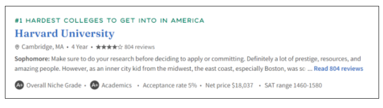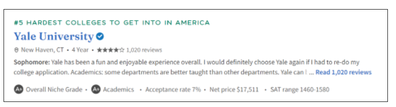 比如:哈佛2022年录取率只有3.19%,Niche却有5%;耶鲁2022年录取率只有4.47%,Niche却有7%。