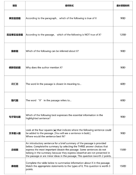 根据托福各题型的特点以及外网托福老师给出的建议,大狮姐为同学们整理了以下表格,供大家参考。