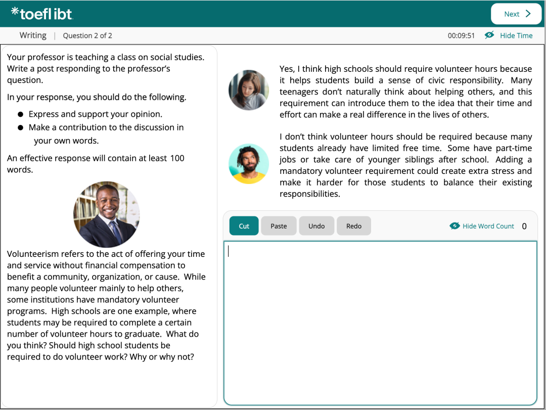 在话题上,可以简单分成学术类邮件(正式程度高,多用被动语态)和商业投诉(礼貌但直接,强调解决方案)两大类,考生在答题的时候需要关注语言上的特征差异。此外,7分钟的限时比学术讨论时间还要短一些,对学生的即时语言理解和表达提高了要求。