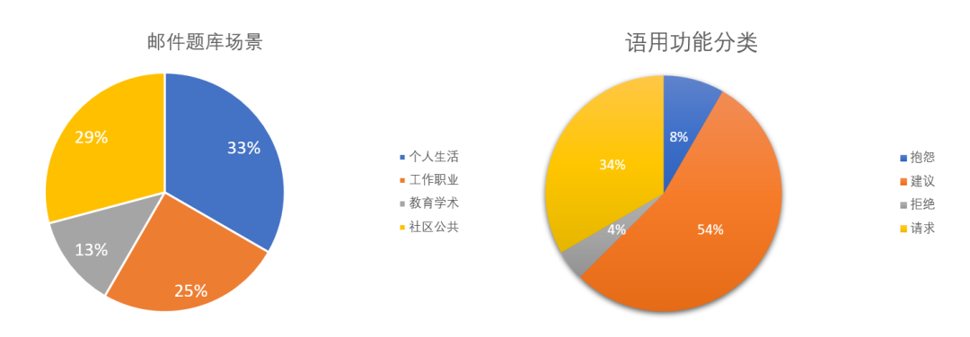 同时根据官方给出的样题,并同步分析目前现有其他考试中相似题型数据,我们同时补充了语用功能的标签,主要包含:抱怨,建议,拒绝,和请求几个方面。
