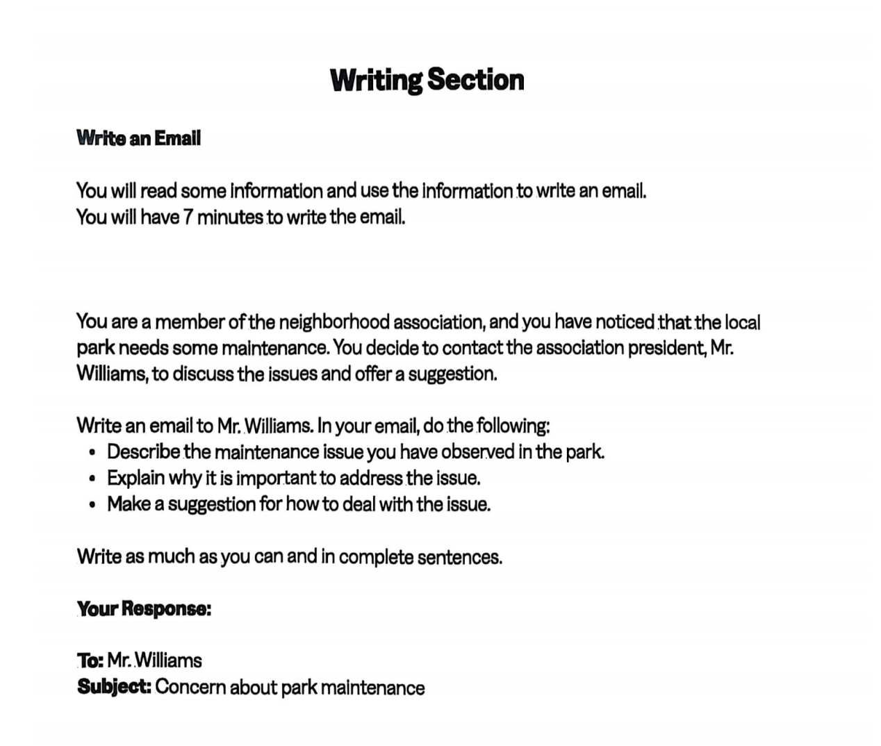 新增题型②:写电子邮件(Write an Email) 7分钟内完成一篇场景化邮件,比如给教授提选课问题、给同学发聚会邀请。需要注意邮件格式规范和语言得体性,属于留学必备实用技能。