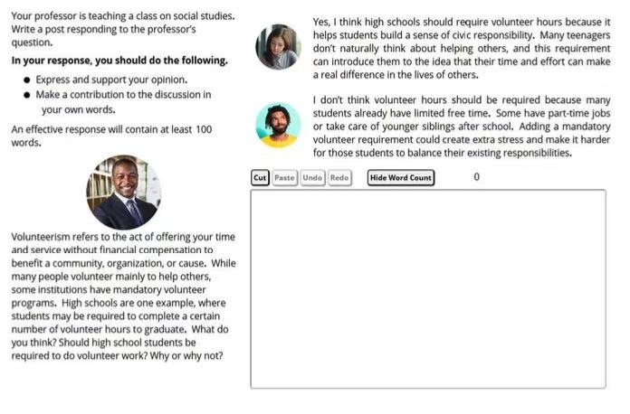 保留题型:学术讨论写作 与改革前一致,10分钟写至少100词,针对话题发表观点并论证,是唯一保留的学术类任务。