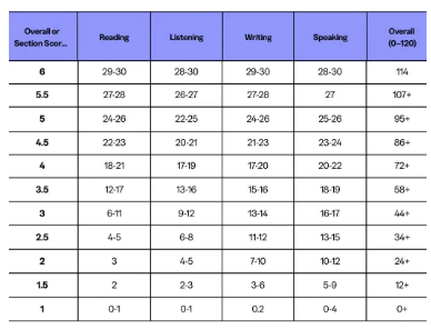简单来说,阅读、听力、口语、写作四科会分独立评分,范围是1到6分,以0.5分为一个档位。